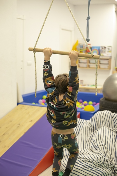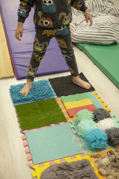 Las sesiones de Terapia Ocupacional basadas en el enfoque de la Integración Sensorial tienen lugar en ambientes físicos que ofrecen infinitas oportunidades para el movimiento y oportunidades sensoriales controladas con el objetivo de favorecer un estado de alerta óptimo para la participación y para el desarrollo de praxis, así como la organización de su comportamiento. Para ello, la sala debe de contar con un espacio amplio, provisto de colchonetas, rampas, rocódromo, neumáticos, escaleras, cojines, piscina de bolas Además, una característica de la sala es el uso de columpios, diseñados para proporcionar input vestibular (movimiento) que es uno de los sistemas básicos para el desarrollo de la postura, de la atención, del control ocular, etc.